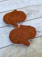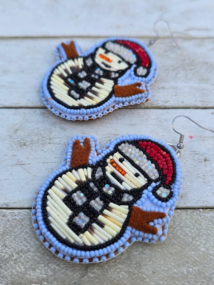 Outlined with black opaque Myuki size 15/0 beads. Filled with special Charlotte true cut beads and porcupine quills. Arms and backing made with buckskin. Measures approximately 2.6"x2.25".